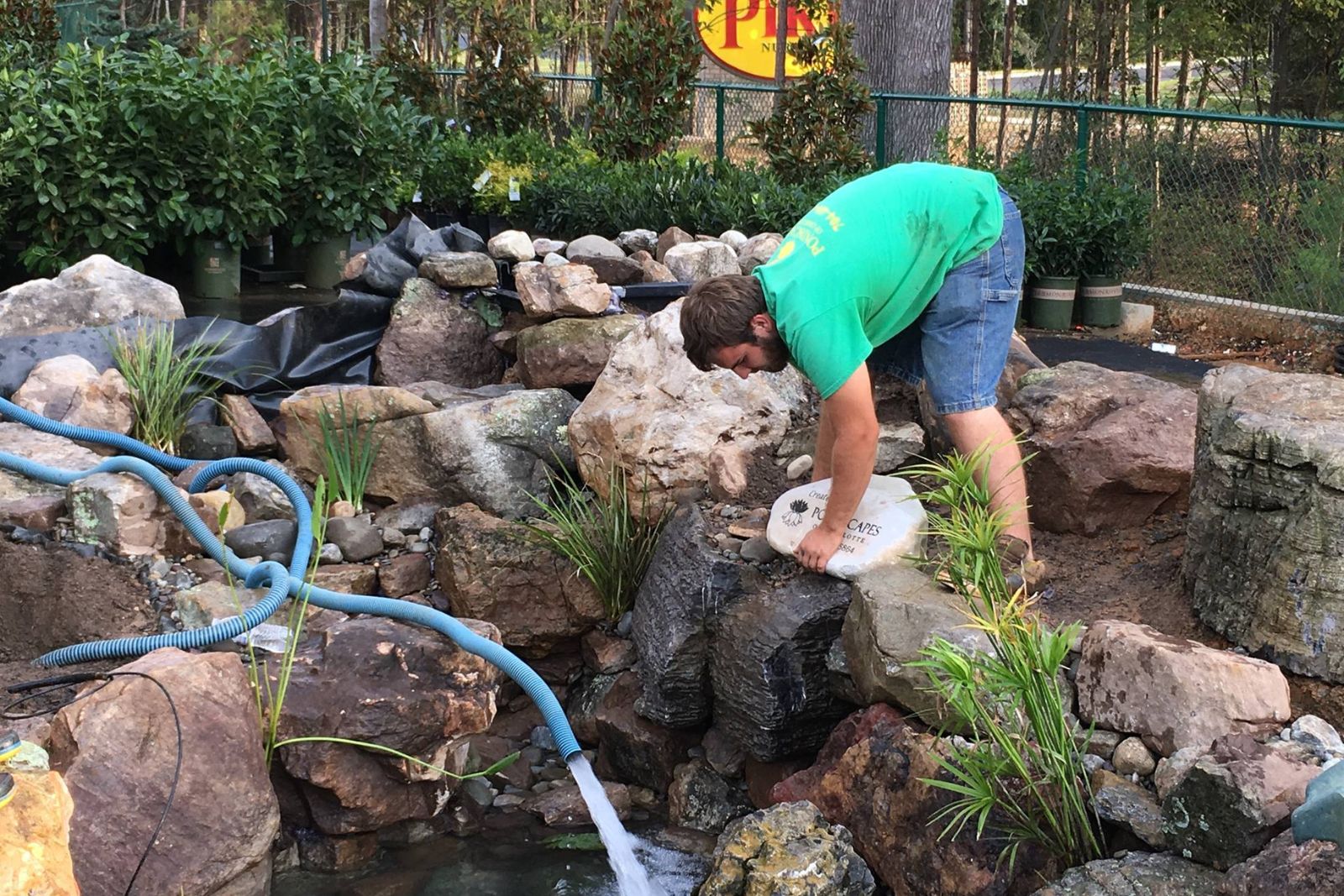 Pike Nursery in Matthews wanted an interactive and peaceful space where customers could enjoy the calming presence of water while shopping. They needed a water feature that would enhance the customer experience and showcase the beauty of integrating plants alongside backyard water features.