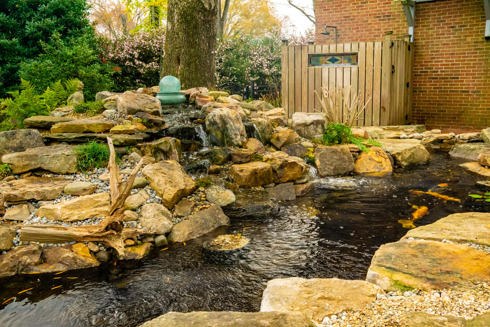 Every pond we build is custom designed for your property. We’ve spent 20+ years building natural ecosystem ponds, pondless waterfalls, and custom water features across Charlotte. Each installation integrates with your existing landscape using natural materials and biological filtration systems. Are you ready to transform your outdoor space?