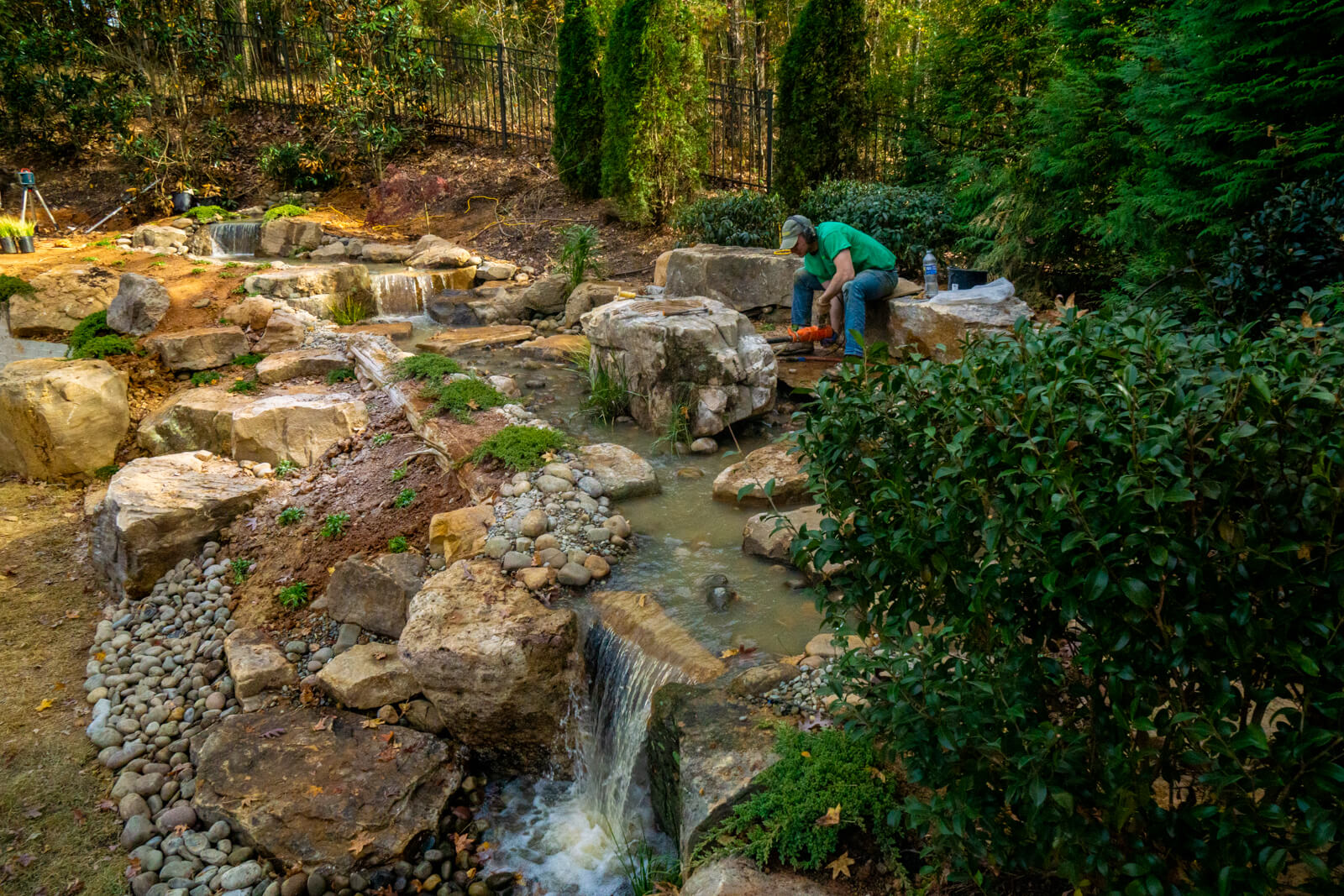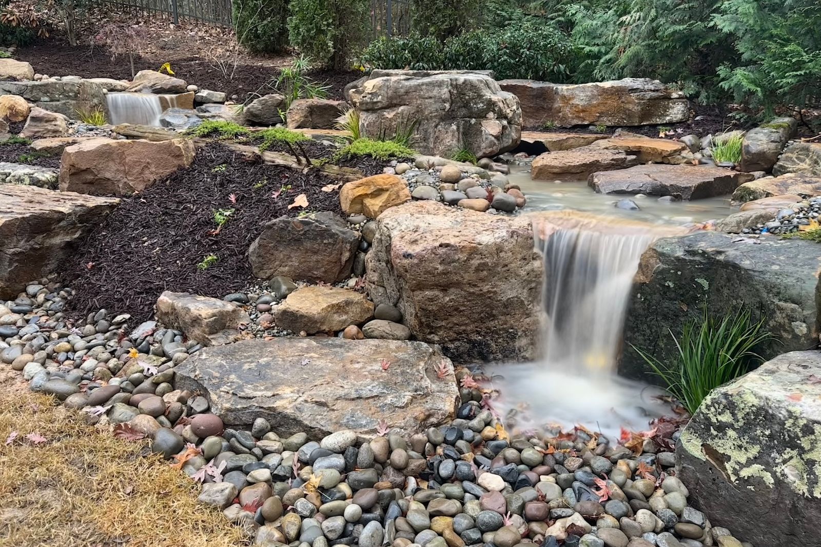 Every pond we build is custom designed for your property. We’ve spent 20+ years building natural ecosystem ponds, pondless waterfalls, and custom water features across Charlotte. Each installation integrates with your existing landscape using natural materials and biological filtration systems. Are you ready to transform your outdoor space?